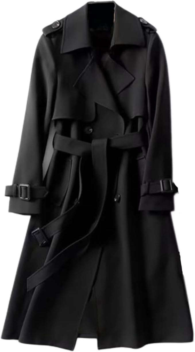 PROPFE Women Trench Coats Korean Style Trench Fashion Coat Double-Breasted Long With Belt Elegant Coat Office Windbreaker