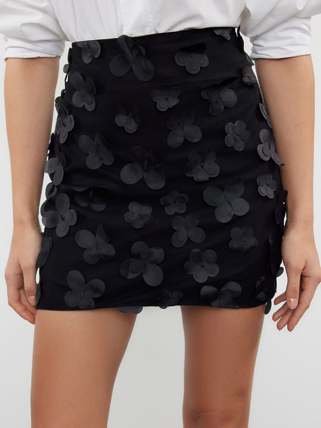Black self design A-Line mini skirt, has an elasticated waistband with slip-on closure, and a straight hem