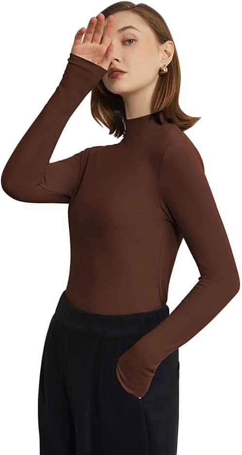 Women’s Long Sleeve Thermal Turtleneck Shirts Women Mock Turtleneck Fleece Lined Lightweight Thermal Top Workout Thermal Underwear Base Layer Pullover Tops Slim Fit Layer Soft